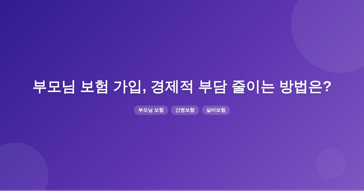 부모님을 건강보험 피부양자로 등록하면 보험료 부담을 줄일 수 있습니다. 종합보험 대신 실비보험을 고려하거나, 간병보험 가입 조건을 꼼꼼히 비교하는 것이 중요합니다.