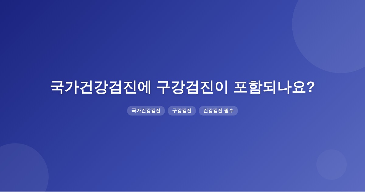 국가건강검진에는 구강검진이 포함되어 있으며, 만 20세 이상 성인과 생후 18개월부터 71개월 사이의 영유아를 대상으로 합니다. 구강검진은 전액 국민건강보험에서 지원되며, 기본적인 검진은 육안 검사로 진행됩니다.