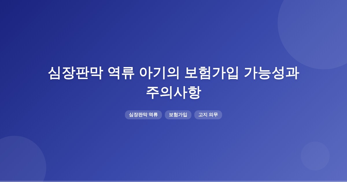 심장판막 역류 진단을 받은 아기가 보험에 가입할 수 있는지는 보험사 및 상품에 따라 다르며, 유병자 보험과 같은 특정 상품에서는 가입이 가능할 수 있습니다. 가입 시 반드시 고지 의무를 준수해야 하며, 이를 위반할 경우 보험금 지급이 거절될 수 있습니다.