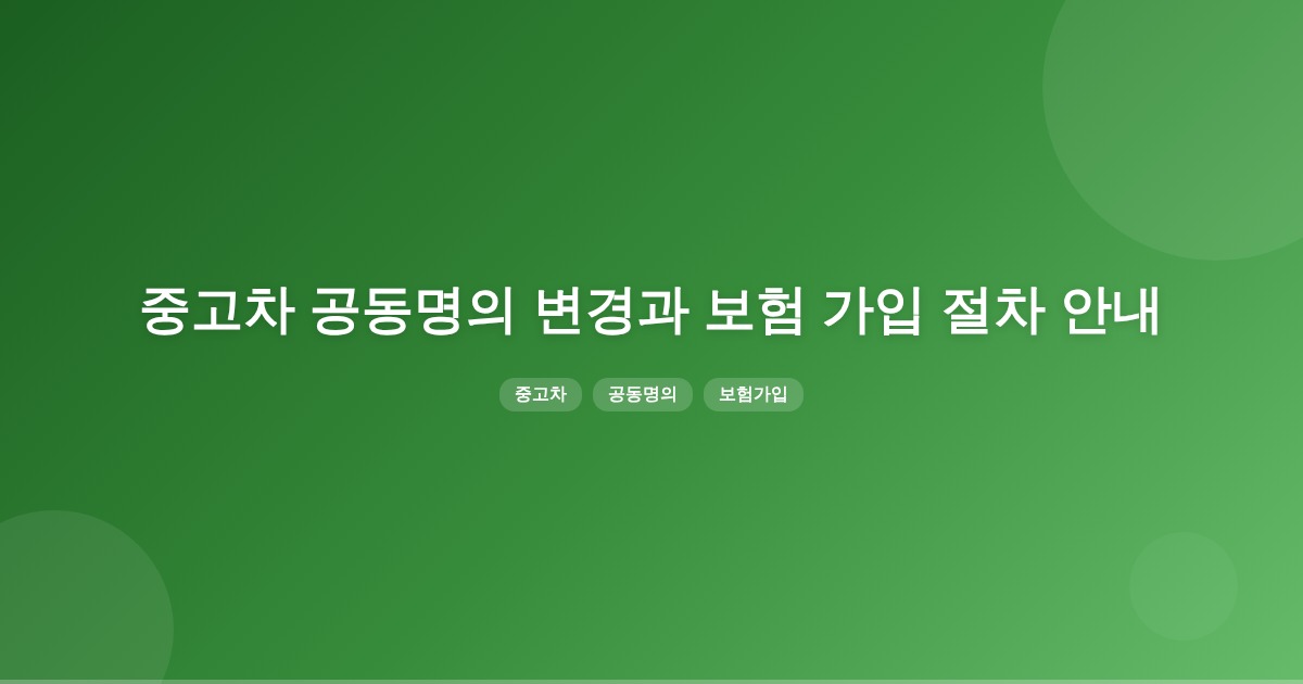 중고차를 공동명의로 변경하려면, 보험은 명의이전일 기준으로 공동명의자 명의로 가입되어야 합니다. 이후 차량등록사업소에서 공동명의 변경 절차를 진행해야 하며, 필요한 서류를 준비하는 것이 중요합니다.