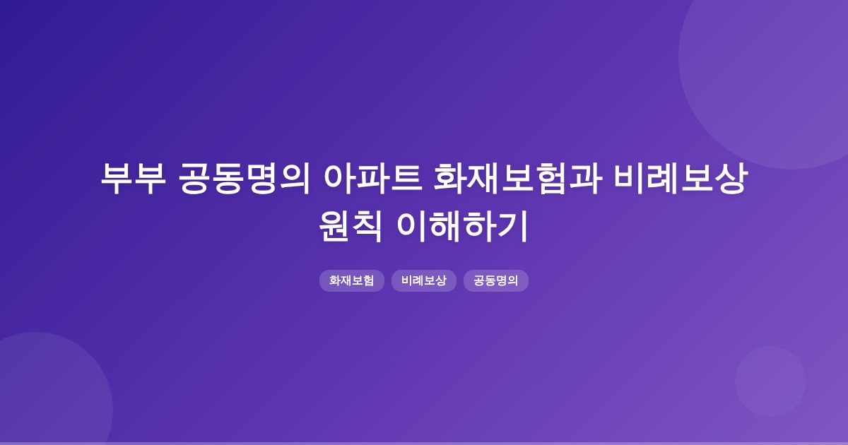 부부가 공동명의로 아파트를 소유할 경우, 한 명의 명의로만 화재보험에 가입할 수 있으며, 가입 금액은 아파트 전체 가치를 반영해야 합니다. 비례보상 원칙에 따라 실제 손해액에 따라 보상금이 결정되므로, 가입 금액이 건물의 실제 가치에 부합하는 것이 중요합니다.
