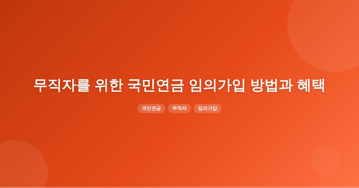 무직자도 국민연금에 임의가입하여 노후를 준비할 수 있습니다. 최소 월 9만원부터 최대 월 57만 3,300원까지 보험료를 납부할 수 있으며, 가입 절차는 간단합니다.