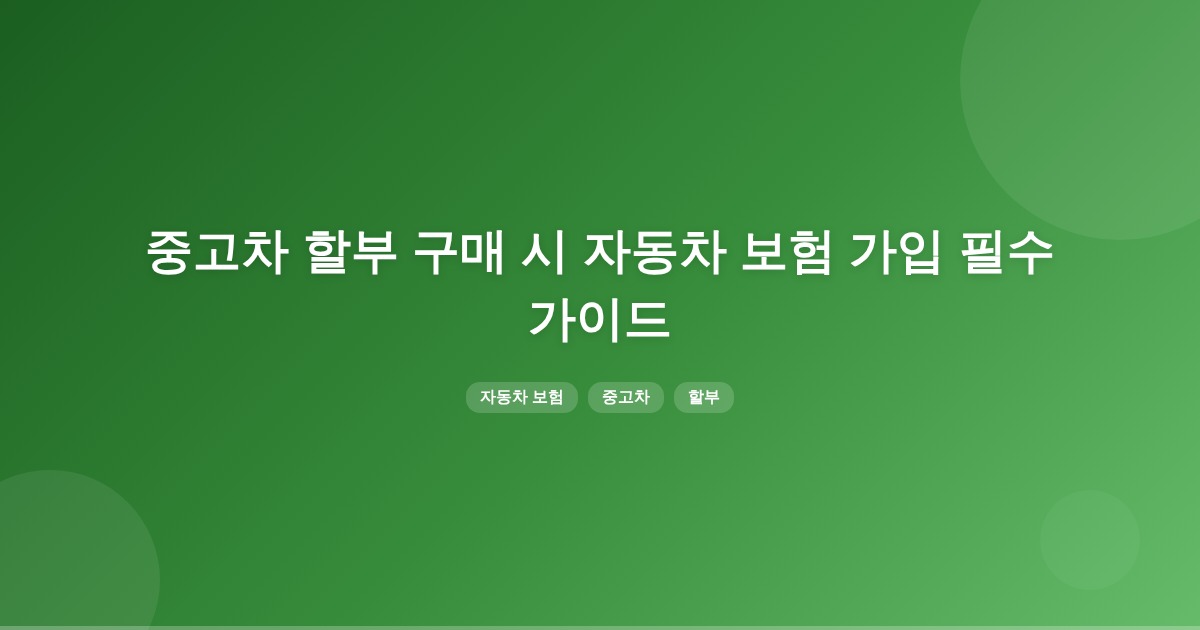 중고자동차를 할부로 구매할 때는 자동차 보험 가입이 필수적이며, 책임보험과 임의보험의 조건을 잘 이해해야 합니다. 대인·대물 배상은 법적 요건을 충족하는 수준으로 가입하는 것이 중요합니다.