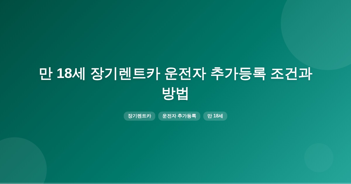 장기렌트카의 추가운전자는 만 21세 이상이어야 하며, 운전 경력 1년 이상이 필요합니다. 만 18세인 경우, 본인 차량을 구매해야 보험 적용이 가능합니다.