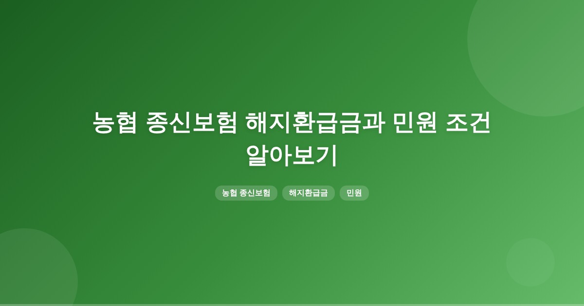 농협 종신보험 해지 후 ‘5일마다 나간 금액’을 돌려받는 것은 중도 해지 환급금과 관련이 있으며, 환급금이 과소 산정된 경우에는 민원 신청을 통해 전액 환급을 받을 수 있습니다. 해지환급금은 상품별로 다르게 산정되므로 약관을 확인하는 것이 중요합니다.
