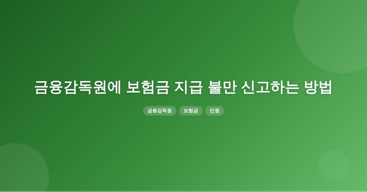 금융감독원에 보험금 지급 불만을 신고하는 방법은 온라인, 전화, 우편으로 가능하며, 민원 처리에는 약 15일이 소요됩니다. 민원 접수 시 정확한 정보와 증빙 자료를 제출하는 것이 중요합니다.