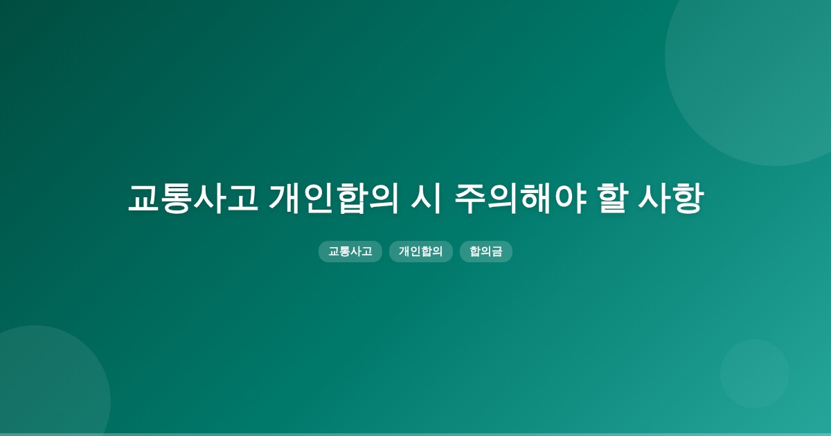 교통사고 후 개인합의는 사고의 심각성과 부상 정도에 따라 합의금이 달라지며, 부제소합의 문구 작성 시 주의가 필요합니다. 합의 후에는 모든 서류를 잘 보관하고, 법률 전문가의 조언을 받는 것이 중요합니다.