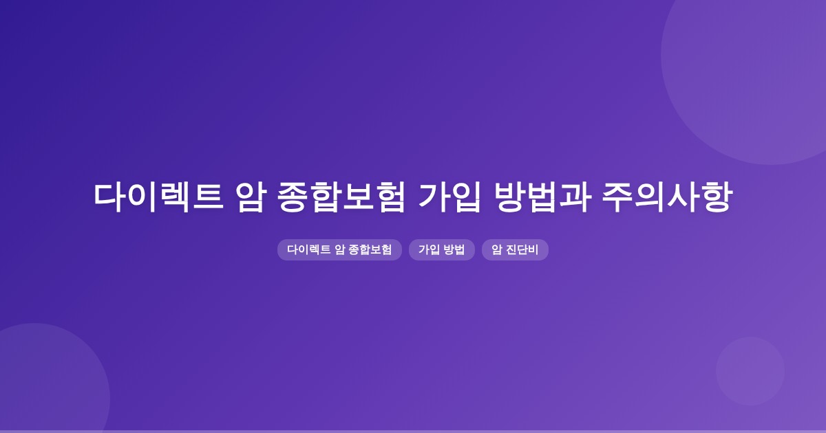 다이렉트 암 종합보험은 비갱신형으로, 가입 시 확정된 보험료를 납입하며 만기까지 보장이 지속됩니다. 암 진단비는 최소 3,000만 원 이상의 보장을 권장하며, 가입 시 건강 진단이 필요할 수 있습니다.