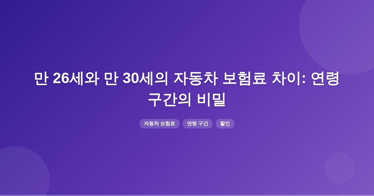 만 26세와 만 30세의 자동차 보험료 차이는 연령 구간 변경과 경력·할인 적용에 의해 발생합니다. 만 26세는 할증이 줄어드는 구간이고, 만 30세는 30대 초반 특약 구간으로 넘어가 추가 할인이 체감될 수 있습니다.