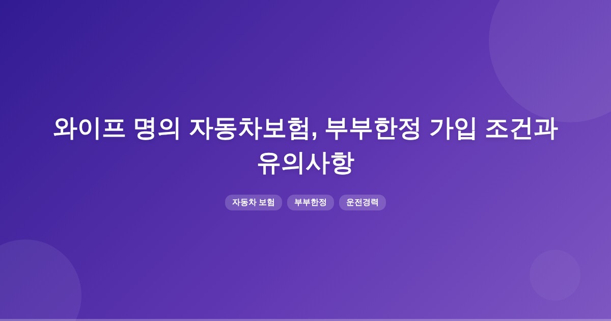 와이프 명의의 차량에 대해 남편이 보험계약자로 등록하고 부부한정으로 가입할 수 있습니다. 이 경우, 남편의 운전경력을 인정받기 위해 보험 가입 시 경력 인정 요청을 해야 하며, 보험료는 주 운전자의 경력에 따라 달라집니다.