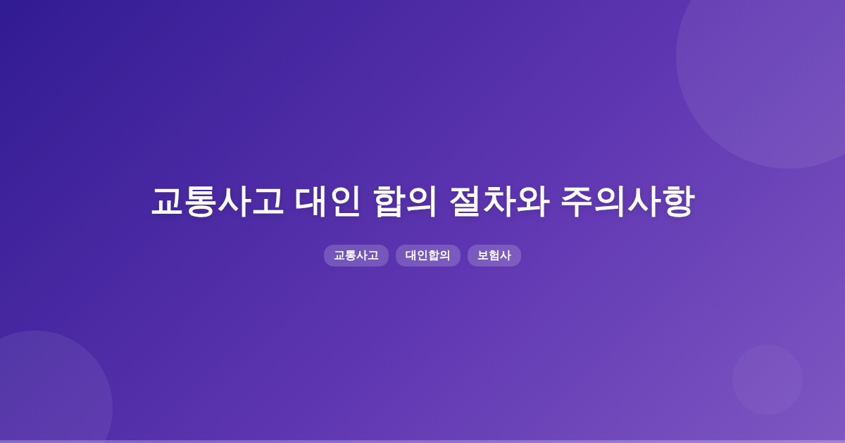 교통사고 후 대인 합의는 치료가 끝난 후 진행하는 것이 좋으며, 상대측 보험사에서 연락이 없을 경우 먼저 연락하여 합의를 요청할 수 있습니다. 합의는 변호사를 통해 진행하는 것이 안전합니다.