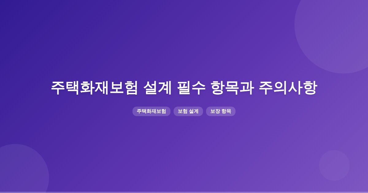 주택화재보험 설계 시 필수 보장 항목에는 화재손해 담보, 건물 손해 담보, 화재 임시 거주비 담보 등이 포함되어야 합니다. 보장금액은 실제 피해액에 따라 설정해야 하며, 중복 가입에 주의해야 합니다.