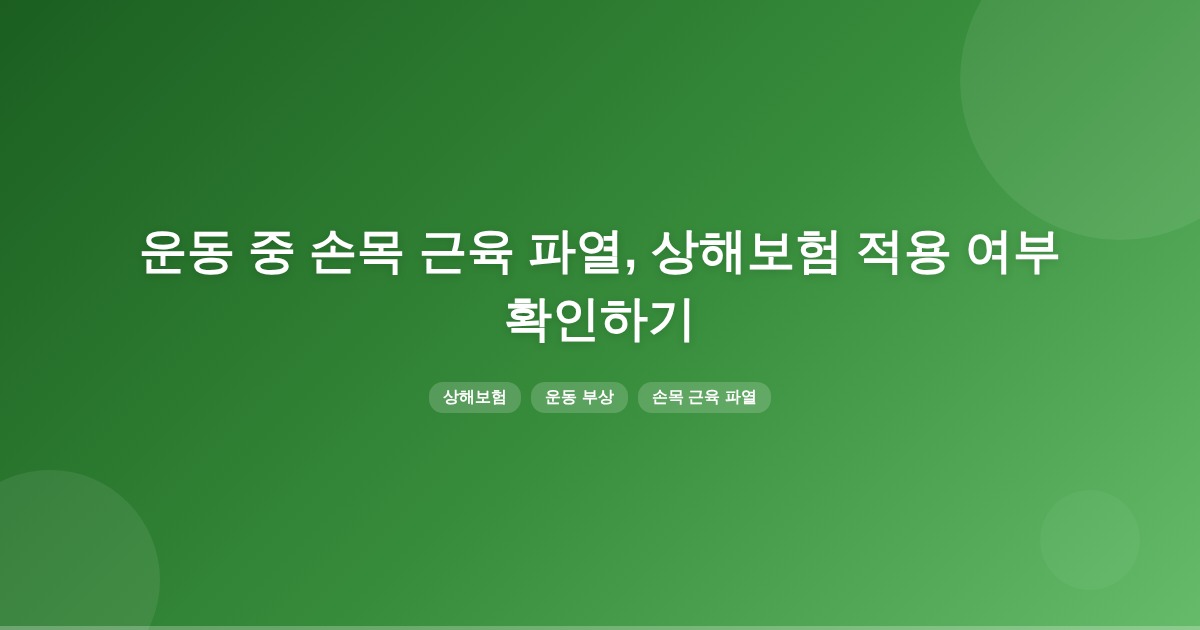 운동 중 손목 근육 파열로 수술을 받은 경우, 일반 상해보험 적용 여부는 상해의 정의와 보험 약관에 따라 달라집니다. 상해 실손보험이 가입되어 있어야 치료비가 보장됩니다.
