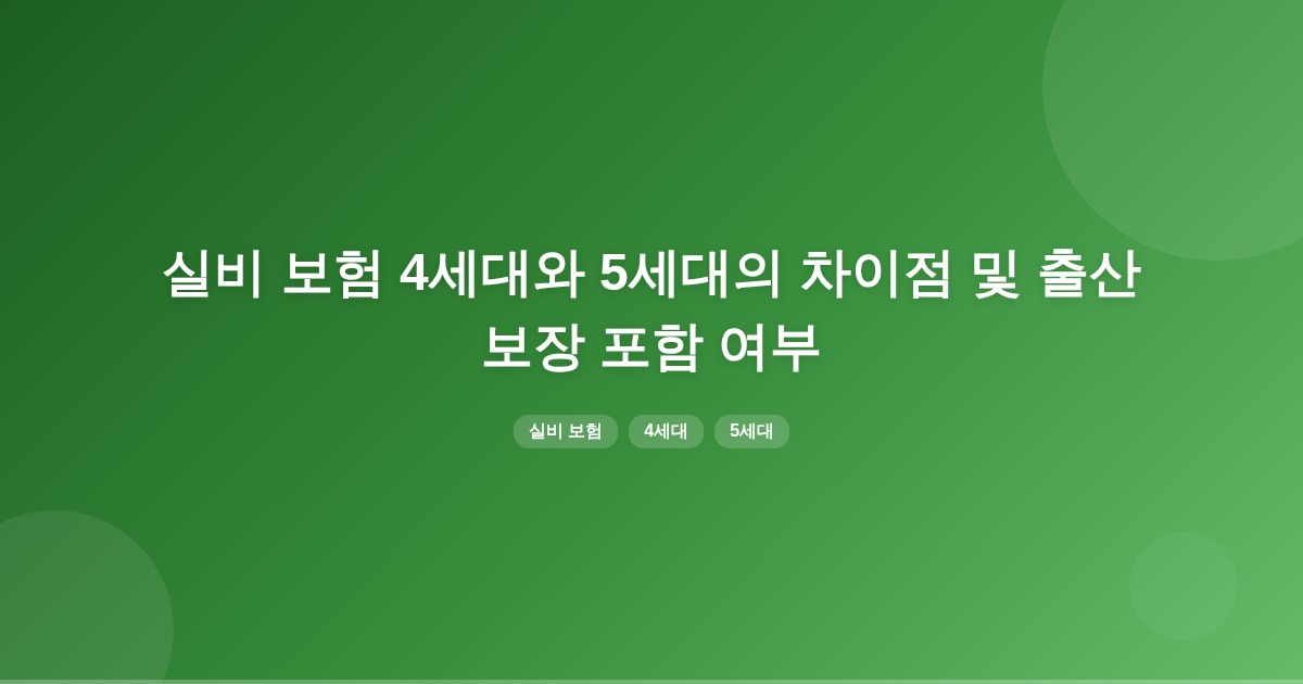 5세대 실비 보험은 4세대에 비해 약 20~30% 저렴하며, 출산 관련 보장이 포함될 예정입니다. 30대가 되면 병원 이력이 없어도 보험료가 비쌀 가능성이 높습니다.