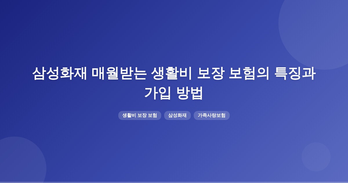 삼성화재의 ‘매월받는 가족사랑보험’은 상해로 사망 시 매월 300만원을 10년간 지급하는 보험입니다. 유사한 생활비 보장 보험은 질병 및 상해로 인한 의료비를 보장하며, 필요 시 생활비로 활용할 수 있습니다.