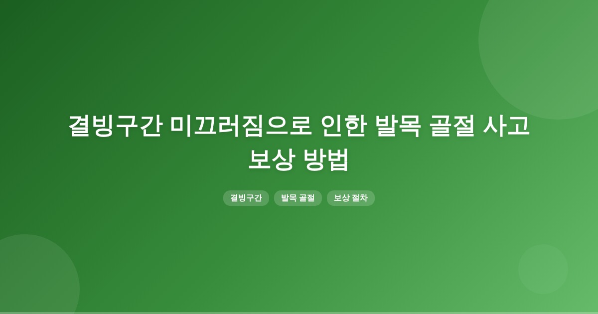 결빙으로 인한 발목 골절 사고의 경우, 구청에 민원을 넣어 보상을 받을 수 있으며, 개인보험을 통해서도 보상 청구가 가능합니다. 필요한 서류와 절차를 철저히 준비해야 합니다.