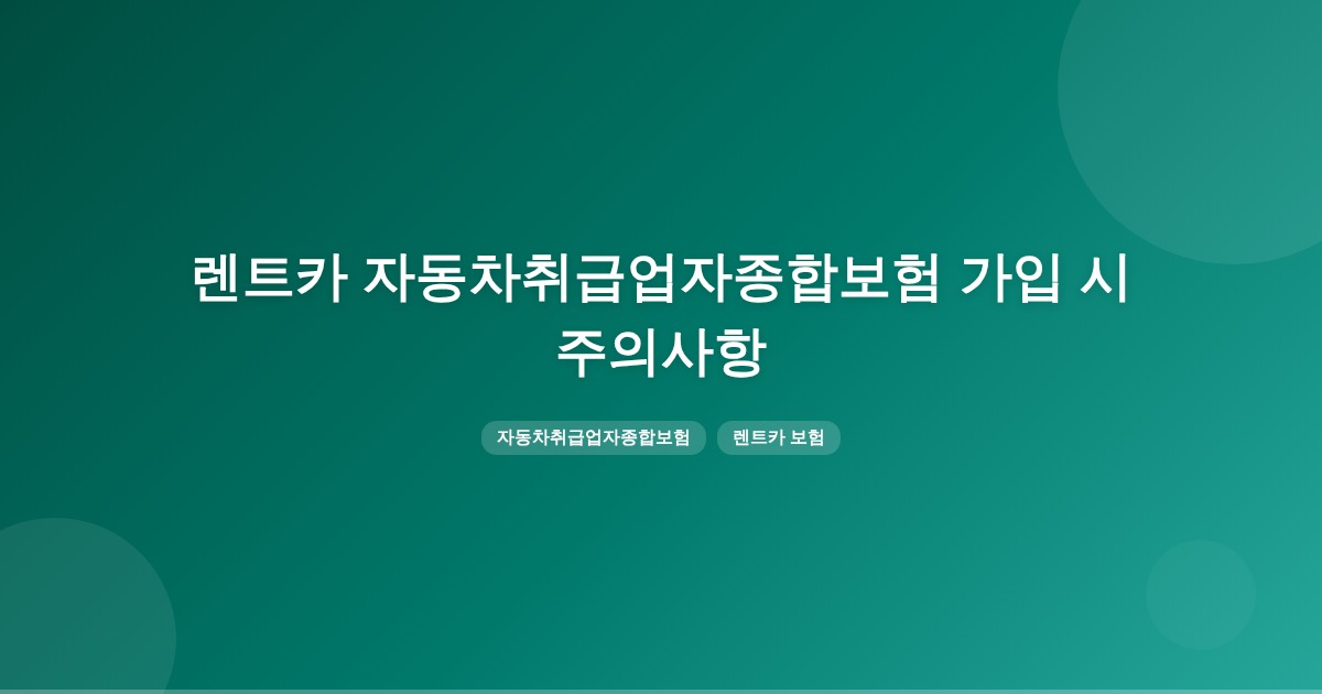 자동차취급업자종합보험은 장기렌트 계약 시 렌트사 명의로 가입되며, 보험료는 렌트료에 포함되는 경우가 많습니다. 사고 발생 시에는 렌트사 콜센터를 통해 접수해야 합니다.
