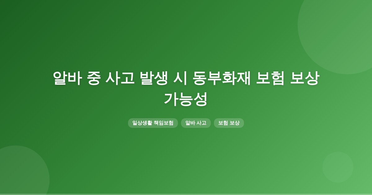 동부화재 일상생활 책임보험은 일반적으로 일상생활 중 우연한 사고에 대해 보상합니다. 그러나 근무 중 발생한 사고는 보장 제외될 수 있으므로 약관을 반드시 확인해야 합니다.