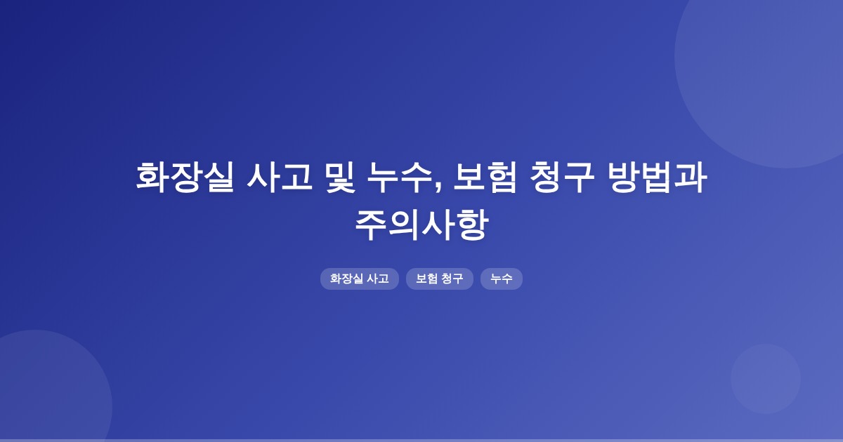 화장실에서 사고가 발생하면 시설물 관리자가 보상 책임이 있으며, 누수로 인한 피해는 일상생활배상책임보험을 통해 청구할 수 있습니다. 보험 청구 시 필요한 서류를 준비하고, 사고 경위를 정확히 설명해야 합니다.