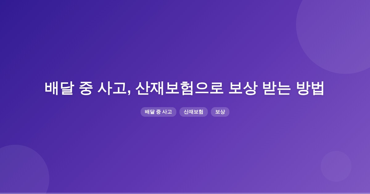 배달 중 사고로 인한 부상은 산재보험을 통해 보상을 받을 수 있습니다. 산재보험은 근로자의 과실 여부와 상관없이 보상이 이루어지며, 치료비, 휴업급여 등을 포함합니다.