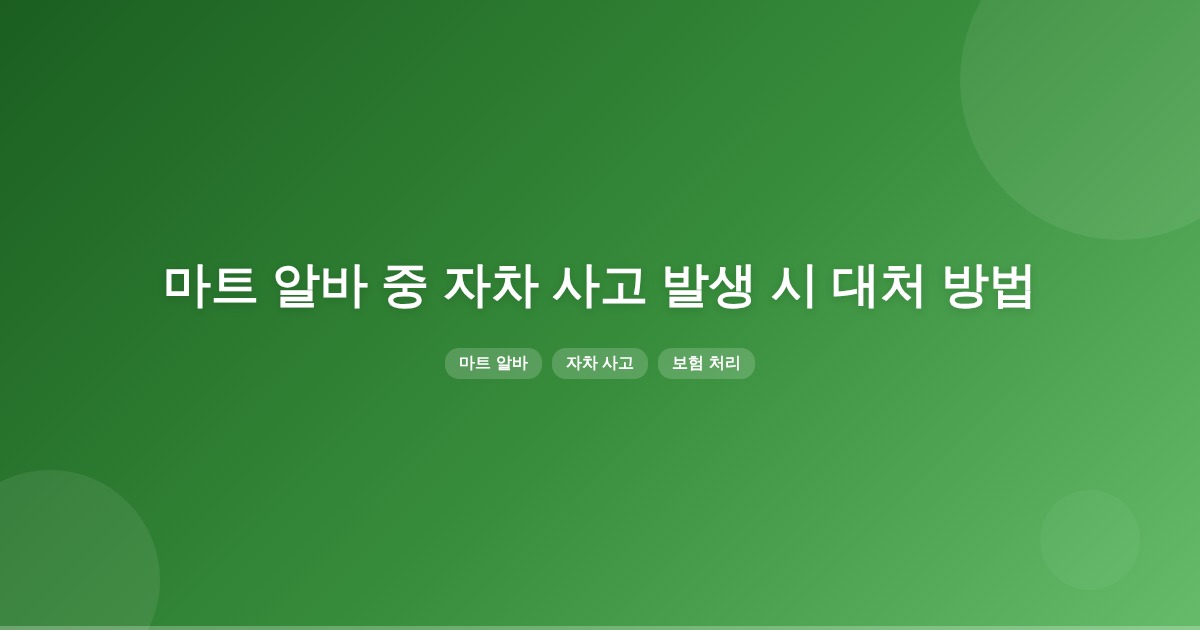 마트 배달 중 자차 사고가 발생하면 우선 사고 현장에서 안전을 확보하고 경찰에 신고한 후, 가입한 보험사에 사고를 접수해야 합니다. 업무 중 사고는 산재보험으로 처리할 수 있으며, 개인용 보험에 가입된 경우 보험 적용이 제한될 수 있습니다.