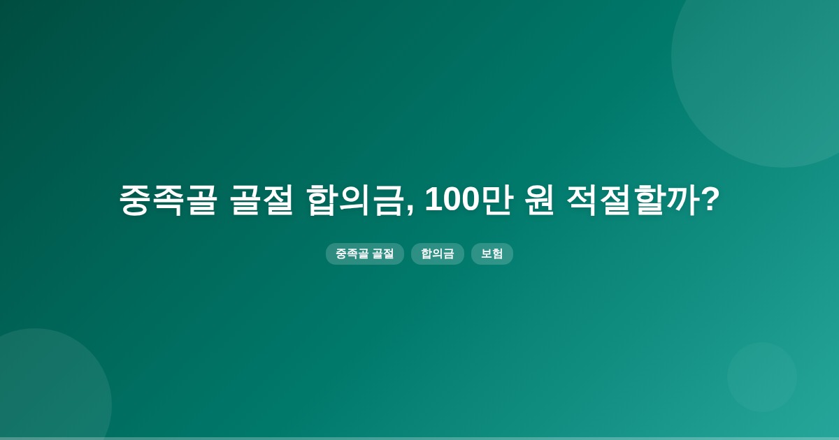 중족골 골절의 경우, 합의금은 사고의 경중, 과실 비율, 후유장해율 등을 고려하여 산정됩니다. 100만 원의 합의금이 적절한지 판단하기 위해서는 전문 손해사정사의 조언이 필요합니다.