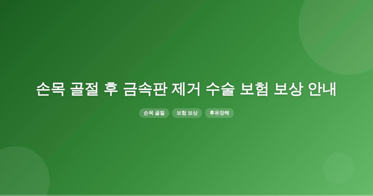 손목 골절로 인한 후유장해는 수술 후에도 손목의 움직임이 제한될 경우 청구할 수 있으며, 보험금 청구를 위해서는 진단서와 치료비 영수증이 필요합니다. 보험사와의 소통에서 전문가의 도움을 받는 것이 중요합니다.