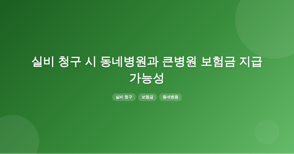 동네병원에서 실비 청구 후 큰병원에서도 검사받은 경우, 보험금 지급 가능성은 있지만, 자기부담금과 청구 방식에 따라 달라질 수 있습니다. 각각의 병원에서 청구 시 공제금이 적용되므로 주의가 필요합니다.