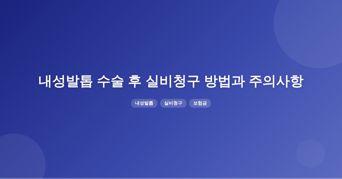 내성발톱 수술 후 실비청구를 위해서는 진단코드 L60.0과 수술코드가 필요하며, 정식 의료기관에서 치료를 받아야 합니다. 또한, 수술이 치료 목적이어야 하며 필요한 서류를 준비해야 합니다.