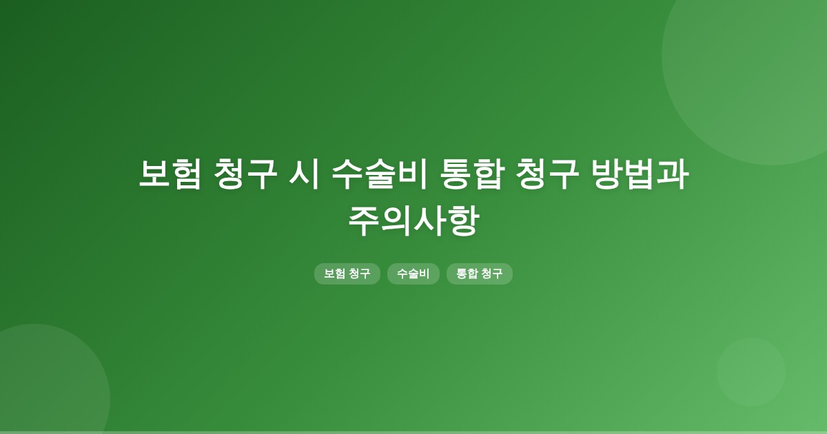 수술 후 병원비를 모아 한 번에 보험청구하는 통합 청구는 가능하지만, 보험사 및 상품에 따라 인정 여부가 다를 수 있습니다. 따라서, 수술이 보장되는지와 청구 시점을 확인하는 것이 중요합니다.