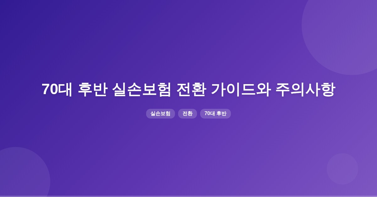 70대 후반에 실손보험을 전환하려면 만기 시점과 전환 가능 여부를 확인해야 하며, 전환 후 원상 복귀가 불가능하다는 점을 유의해야 합니다. 또한, 전환 시 비급여 보장 축소와 자기부담 강화가 있을 수 있습니다.