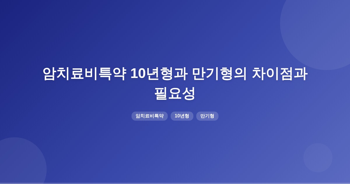 암치료비특약의 10년형은 진단 후 1년 동안 최대 1,000만원을 한 번에 보장받는 구조이며, 만기형은 치료 종류별로 최대 5,000만원까지 반복적으로 보장받을 수 있습니다. 따라서 치료의 횟수와 기간에 따라 적합한 상품을 선택하는 것이 중요합니다.