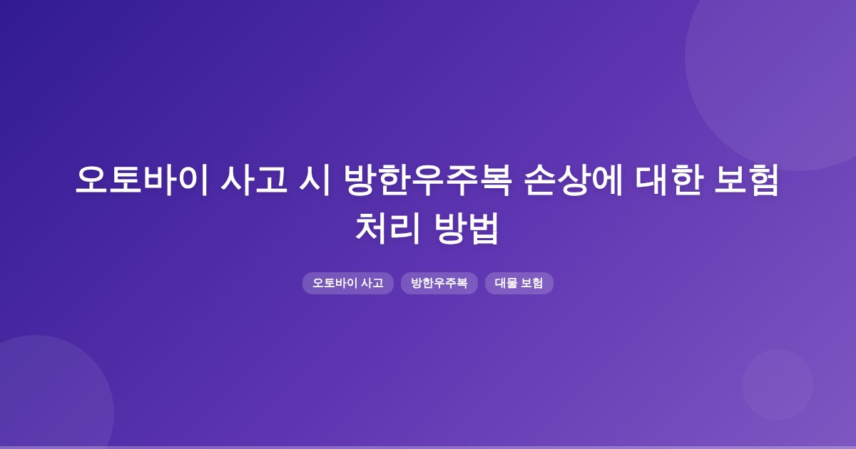오토바이 사고로 방한우주복이 손상된 경우, 상대방이 책임보험에 가입되어 있어야 대물 보험 처리가 가능합니다. 또한 사고 당시의 사용 형태와 증거 확보가 중요합니다.