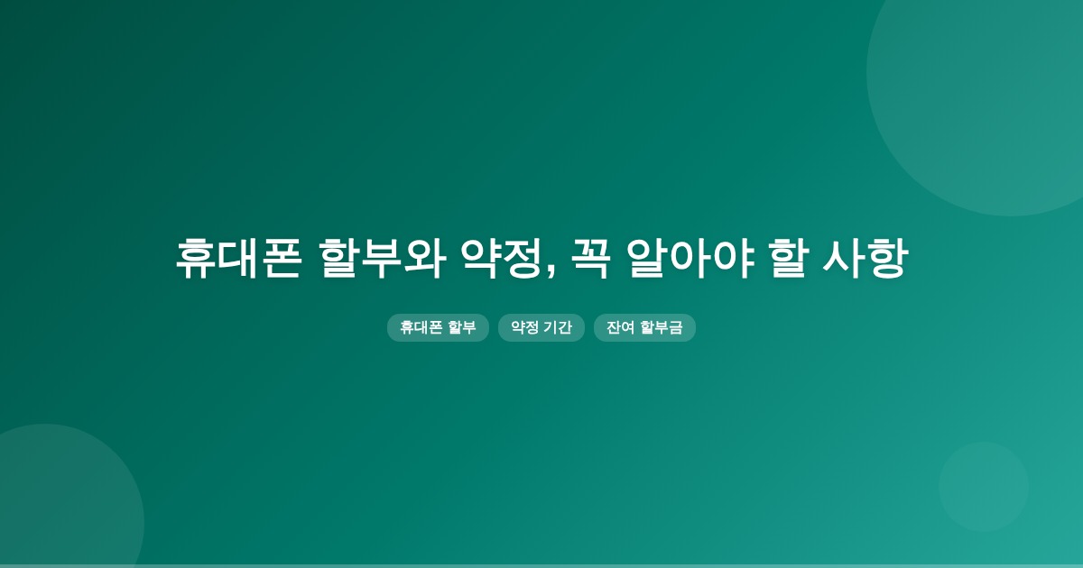휴대폰 할부는 단말기 상환 기간을 의미하며, 보통 24개월 또는 36개월입니다. 약정 기간과 할부 기간이 다를 수 있으므로 잔여 할부금과 이자 발생 여부를 확인하는 것이 중요합니다.