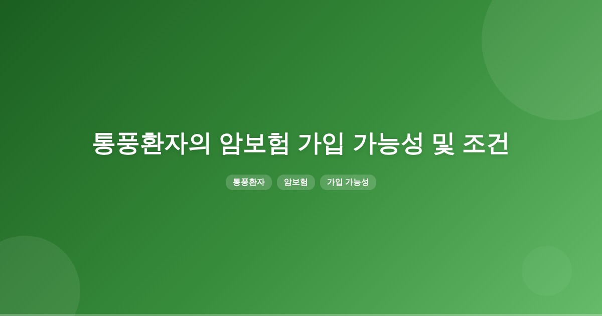통풍환자는 일반 암보험에 가입할 가능성이 높습니다. 특히, 통풍과 고지혈증을 동시에 관리하고 있어도 암보험 가입에 큰 제약이 없을 수 있습니다.