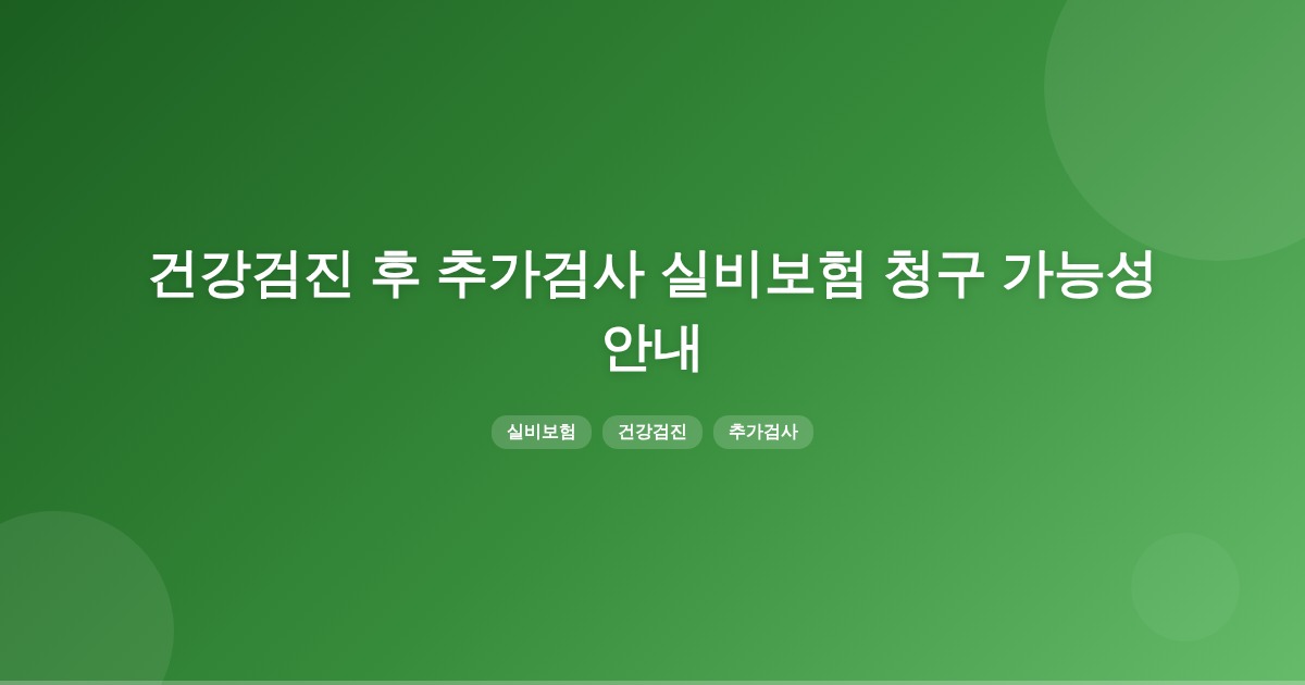 건강검진 후 이상 소견이 발견되어 추가 검사를 받으면 실비보험 청구가 가능합니다. 그러나 단순 건강검진은 보험금 청구 대상이 아니므로, 병적 소견이 있을 경우에 한해 치료 목적이 인정되어 청구할 수 있습니다.
