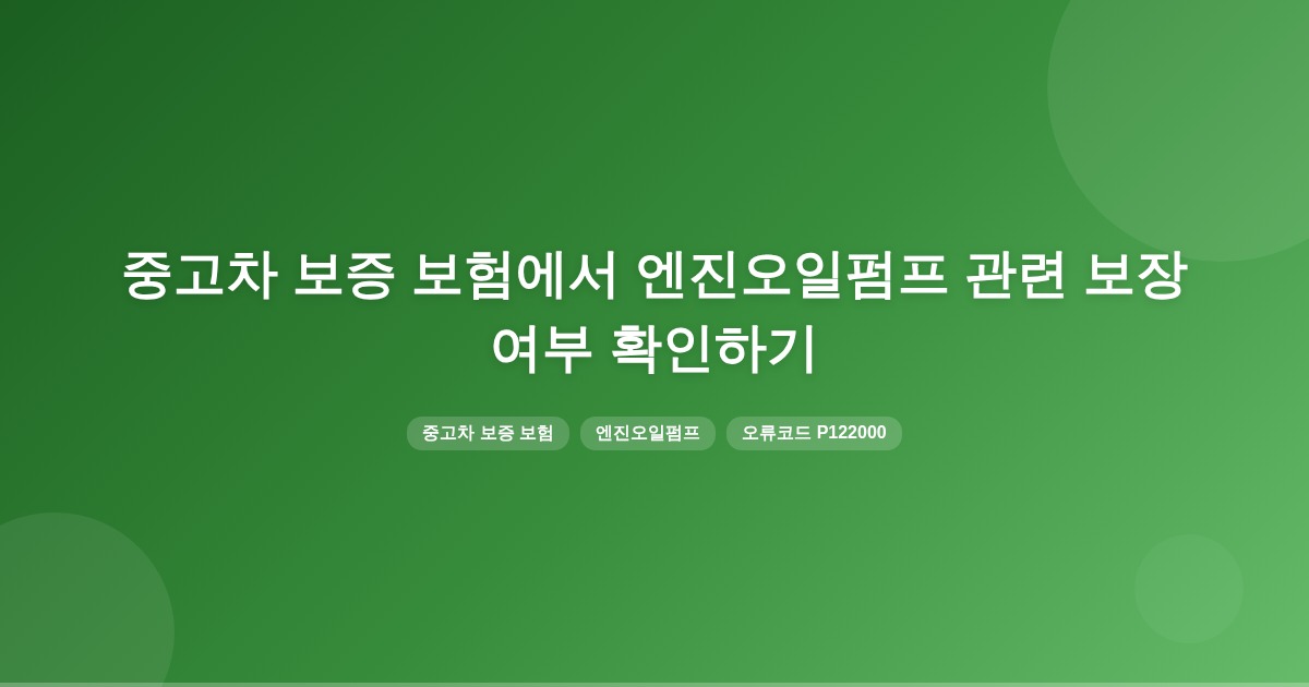 메리츠 중고차 보증보험에서 오류코드 P122000이 엔진오일펌프와 어떤 보증 범위로 연결되는지에 대한 명확한 근거는 확인되지 않았습니다. 보장 여부는 보험 약관과 진단기 코드 확인이 필요합니다.