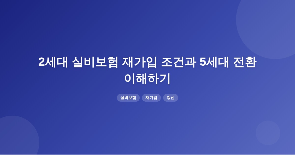 2013년 4월 이후 가입한 2세대 실비보험은 15년마다 재가입해야 하며, 재가입 시 건강 심사 없이 이전 계약과 동일한 상품으로 재가입할 수 있습니다. 그러나 2026년부터는 기존 계약자도 5세대 실비보험으로 전환될 가능성이 있습니다.