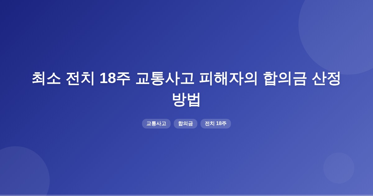 최소 전치 18주 교통사고 피해자는 합의금 산정 시 위자료, 향후 치료비, 휴업 손해, 장해 및 후유장해 등을 고려해야 합니다. 보험사는 피해자의 상황에 따라 합의금 제시액을 달리할 수 있으므로, 항목별 근거 자료를 준비하는 것이 중요합니다.