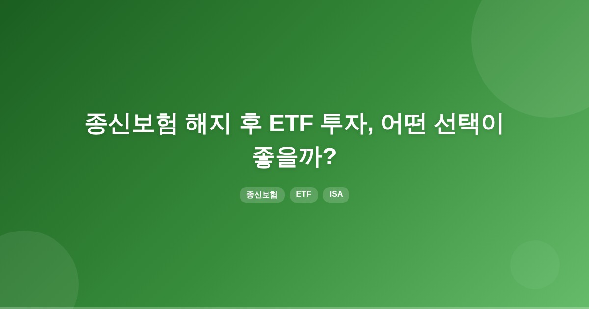 종신보험 해지환급금 1700만원을 ISA에 넣고 ETF로 투자할지, 아니면 그대로 유지할지는 목표, 세제 혜택, 유동성을 고려하여 결정하는 것이 좋습니다. ISA는 비과세 혜택이 있지만 중도 인출 시 유동성 제한이 있습니다.