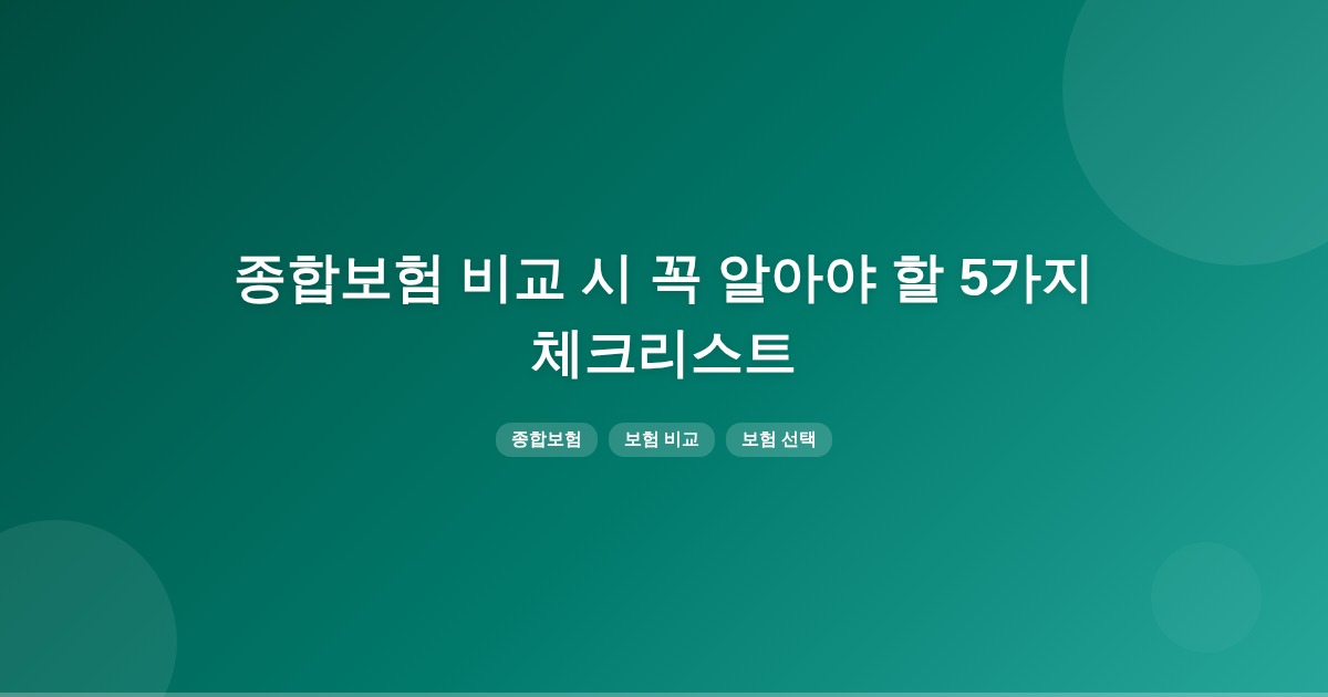 종합보험을 비교할 때는 보험료 외에도 보장 범위, 자기부담금, 보장 한도, 갱신 주기, 중복 특약 등을 함께 고려해야 합니다. 이러한 요소를 통해 본인의 상황에 맞는 최적의 보험을 선택할 수 있습니다.