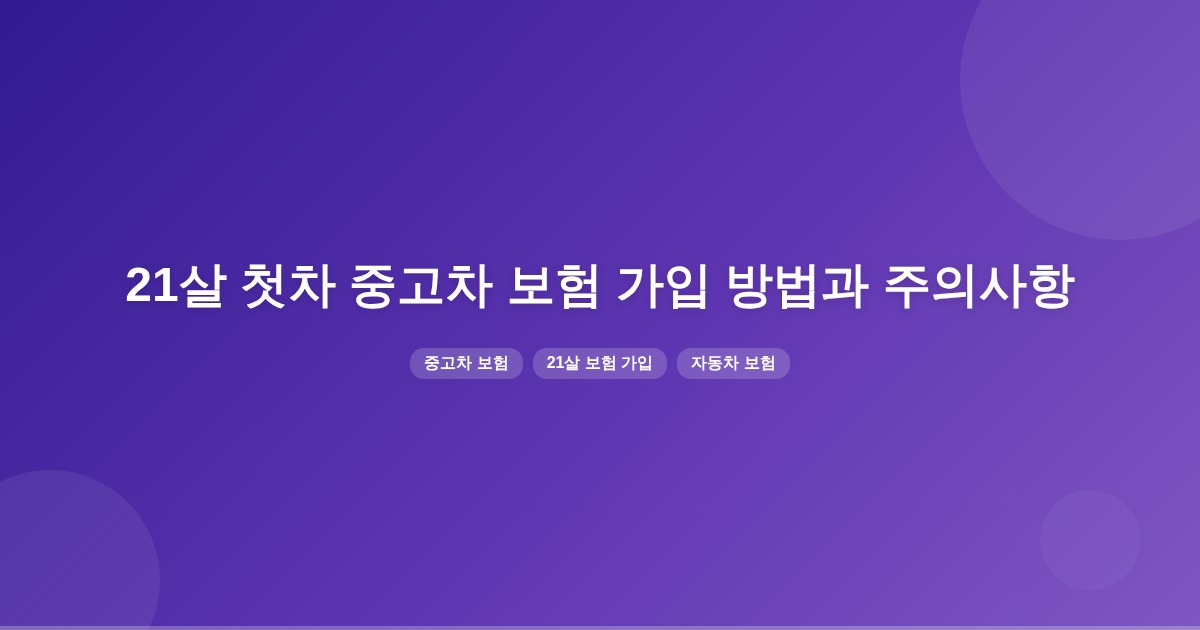 21살이 중고차를 구매할 경우, 계약 후 바로 보험 가입이 가능하며, 차량 번호와 본인 인증이 필요합니다. 이전 이력이 있는 차량은 보험 가입 시 주의가 필요합니다.