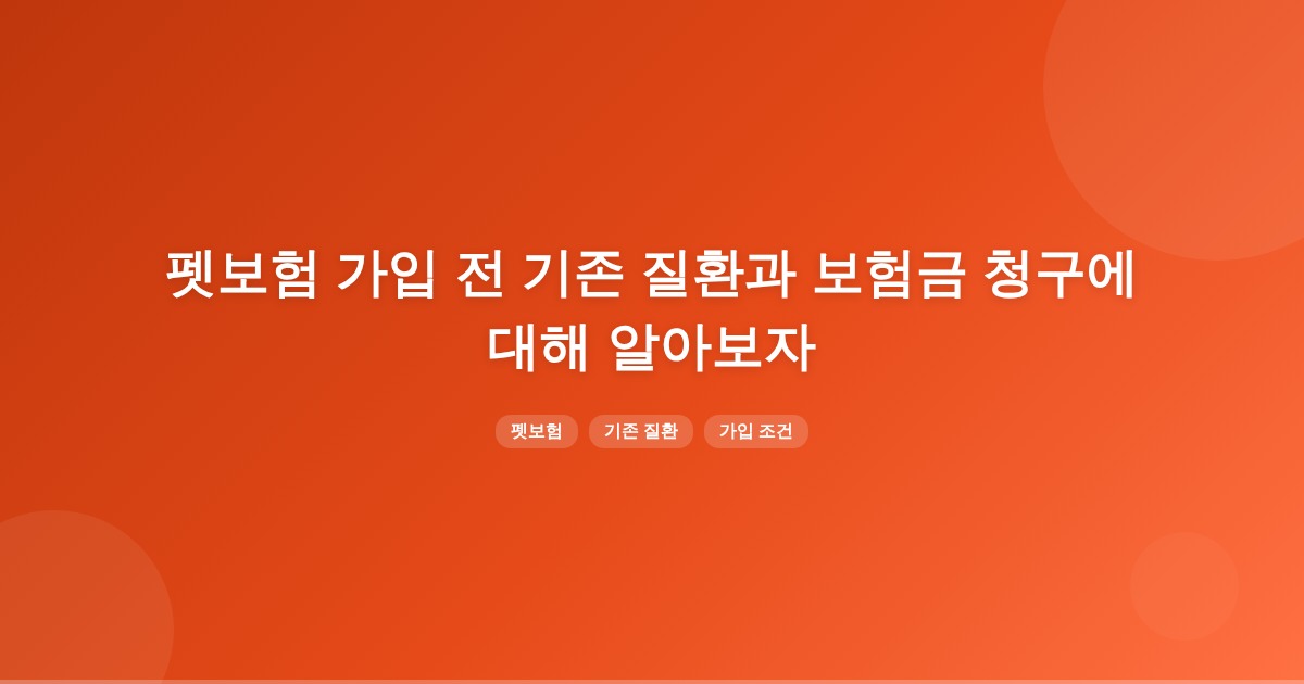 펫보험 가입 시 기존 질환에 대한 보장은 보험사마다 다르며, 대부분의 경우 보장이 제외됩니다. 특히 특정 질병에 대해서는 가입 후 일정 기간 동안 보장이 이루어지지 않으므로, 사전에 각 보험사의 심사 기준을 확인해야 합니다.