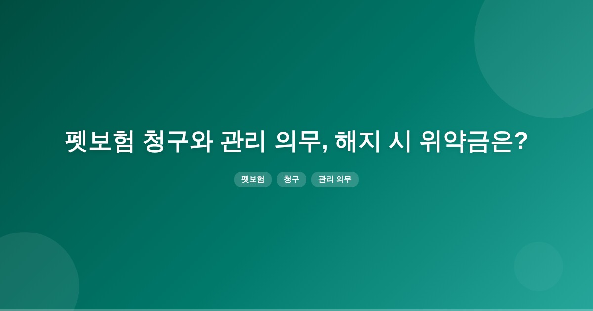 펫보험 청구 시 관리 의무를 이행하지 않으면 해지 사유가 될 수 있으며, 이 경우 위약금 발생 여부는 약관에 따라 다릅니다. 계약서가 없는 경우에는 환불 협상 여지가 있을 수 있습니다.