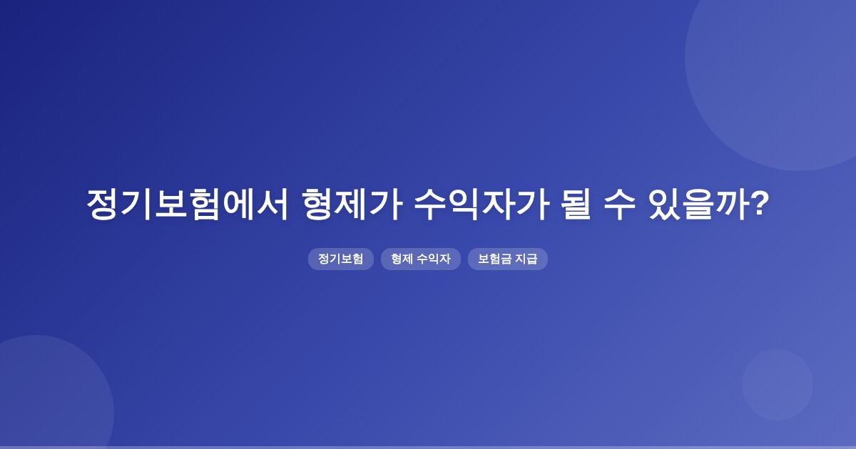 미혼인 경우 형제가 정기보험의 수익자로 지정될 수 있는지에 대한 명확한 정보는 확인되지 않았습니다. 보험금 지급은 수익자 설정에 따라 달라지므로, 보험사 약관을 통해 확인해야 합니다.