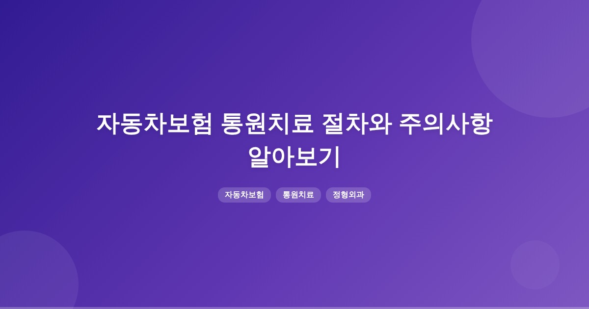 자동차보험 통원치료는 정형외과와 한의원에서 모두 가능하며, 치료비는 보험에서 전액 보장됩니다. 치료가 4주 이상 지속될 경우 진단서를 제출해야 합니다.