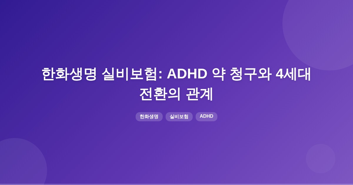 한화생명 실비보험에서 ADHD 약 청구 시 4세대 전환으로 인한 불이익이 명확히 확인되지 않았습니다. 그러나 청구하는 진료비와 약제비가 급여인지 비급여인지에 따라 보장 여부가 달라질 수 있습니다.