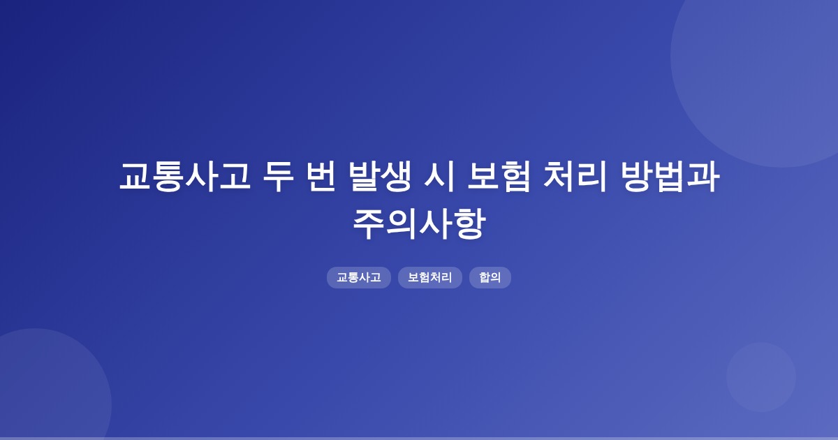 교통사고가 두 번 발생한 경우, 첫 사고의 보험 처리가 지연되면 두 번째 사고의 처리도 복잡해질 수 있습니다. 사고 직후에는 현장 안전 확보와 필요한 자료를 정확히 정리하는 것이 중요합니다.