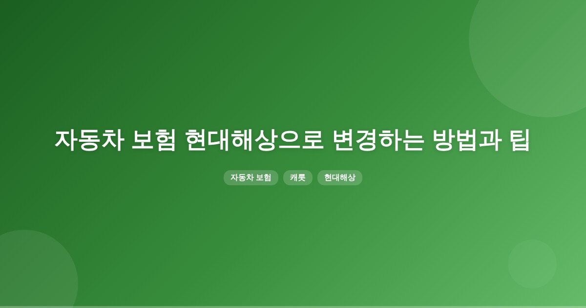 캐롯 자동차보험을 현대해상으로 변경하려면, 현대해상에서 새 보험을 가입한 후 캐롯에서 해지 신청을 해야 합니다. 이 과정에서 환급금과 해지 수수료를 확인하고, 보장 공백이 없도록 해지일과 신규 보험 개시일을 조정해야 합니다.
