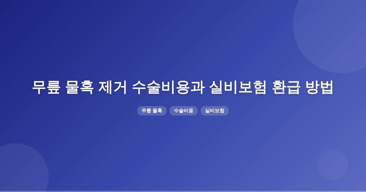 무릎 물혹 제거 수술비용은 병원과 수술 방식에 따라 다르며, 예시로 수술 전 검사 13만원과 수술비 120만원으로 총 133만원이 소요될 수 있습니다. 실비보험은 수술 후 청구를 통해 환급받을 수 있습니다.